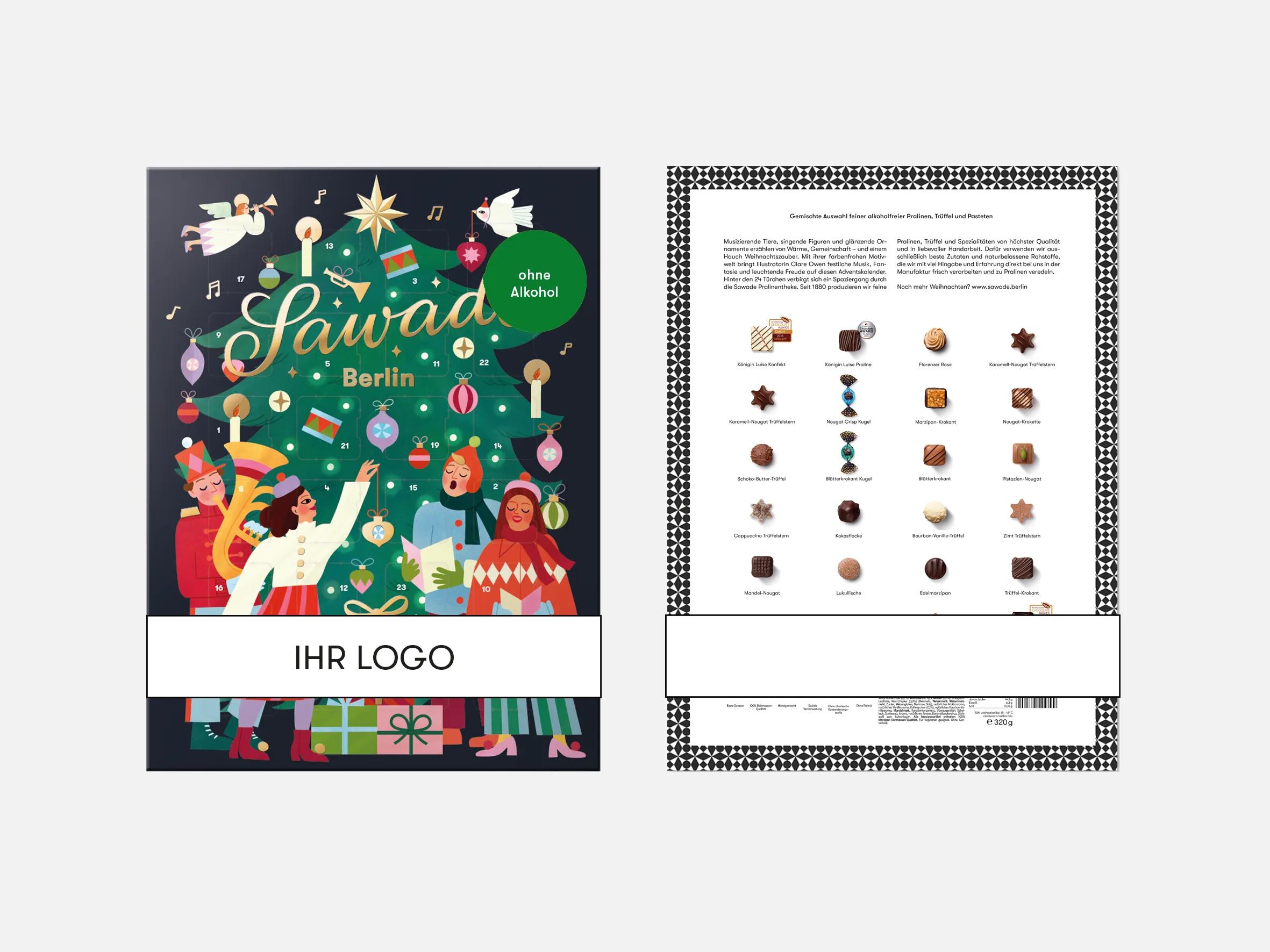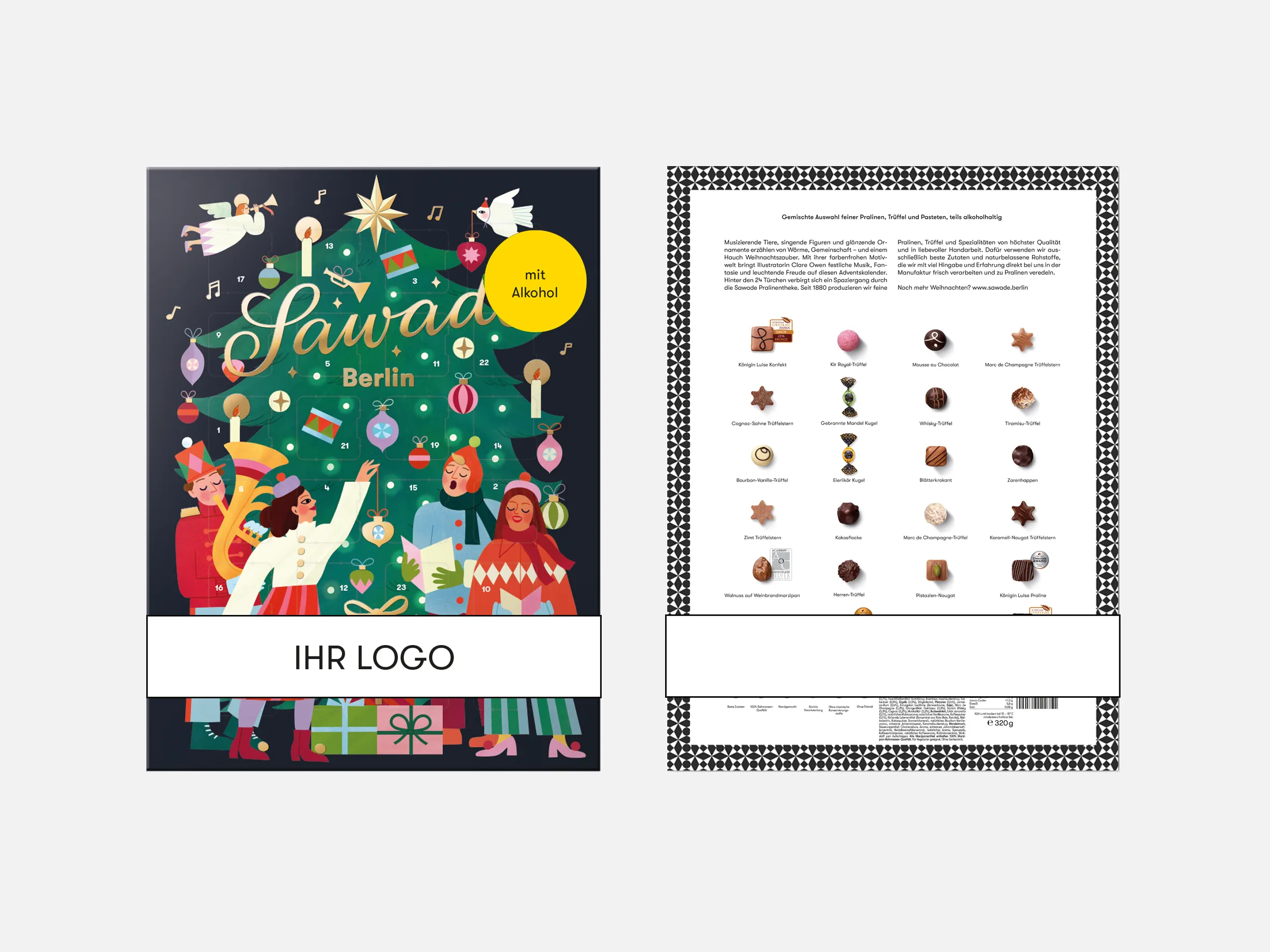 Unser Adventskalender bereitet 24 Tage lang Freude. Mit einer individualisierten Banderole versehen, erinnert er Ihre Kundinnen und Kunden die gesamte Weihnachtszeit hinweg an Ihre Marke und hinterlässt bleibenden Eindruck. Für Mitarbeiterinnen und Mitarbeiter ist er eine besondere Wertschätzung.